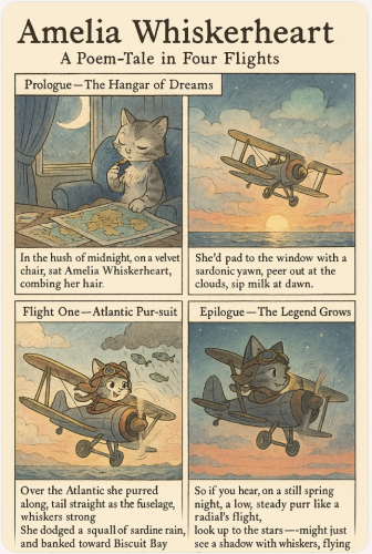 Here’s a sweeping, story‑in‑verse for your fearless, fluff‑tailed sky captain — a tale that lives somewhere between the sardonic lounge of Garfield and the daring plume of a golden‑age aviator, but scaled up in drama, wit, and cat charisma.